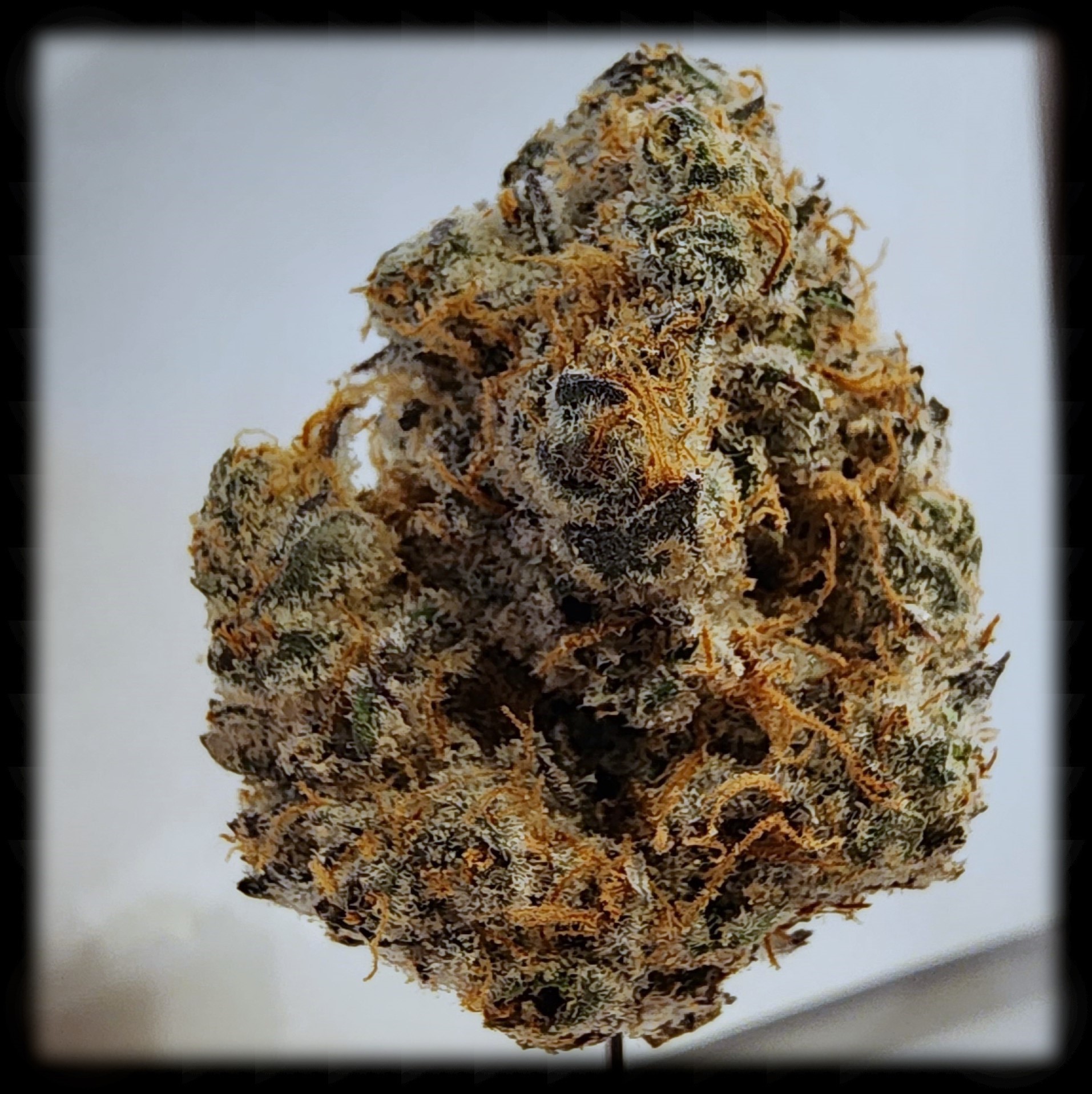 Turpee Slurpee is a high THC indica hybrid, crossing GMO and Orange Zkittlez, and it lives up to its pedigree. The muted green nugs are dense, almost hard to pull apart. The aroma – certainly fragrant even before breaking into the buds – bursts forth from the inside, sweet and sour with a soft diesel halo. The smoke is rich, earthy and oily, reminiscent of a marinated truffle, and while the first green hits were just a little sharp in the throat, later hits felt very smooth, bringing an herbal flavor to the forefront. The experience of smoking Turpee Slurpee is like standing in a garden shed on a Saturday in mid-spring, lawnmower caked with damp grass from having to mow earlier that morning.