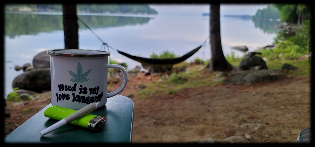 Last summer was my first year taking this vacation since becoming a budtender, and while I was excited to bring a variety of cannabis products, I knew that Moose & Lobsta was going to occupy a large percentage of that, given that I was sure my description was going to fit. I’m an early riser, and every morning I was getting up solidly two or more hours before anyone else across all the cabins. That’s my time, those early hours. And I started every day there on the lake by brewing a pot of coffee, taking my vitamins and such, and then sitting in an Adirondack chair mere feet from the lake, listening to a podcast or audiobook, sipping my piping hot black coffee from an enameled camp mug as the sun rose from behind me and lake gently lapped against the shore, and I smoked a Moose & Lobsta joint. Every morning. It was, in a word, perfect.