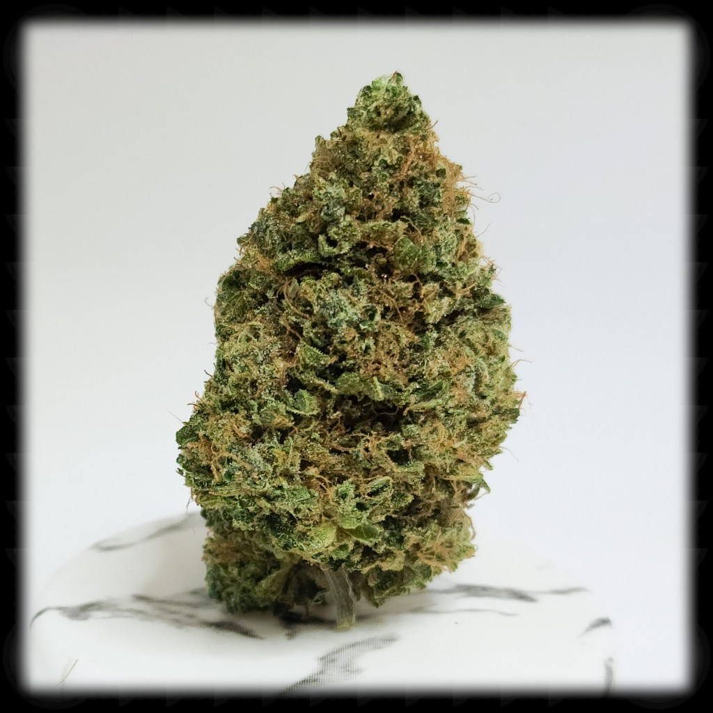 The nugs are large, neatly shaped, dense, and a little sticky. They’re a fairly even medium green throughout, with light clusters of brown pistils peppering the bud. They broke apart easily but didn’t crumble immediately, making them excellent for the grinder, if just a bit sticky, so grind in both directions if you don’t already.
