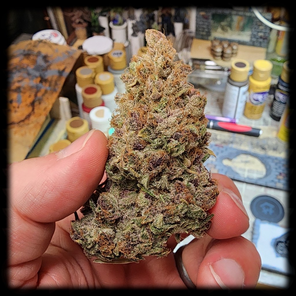 The high is more or less the same as the cart, though I was smoking this later in the evening, and in a more sedentary context, sitting on the couch and watching – I believe – Rings of Power (the Lord of the Rings show, which should be no surprise that I am watching, as I did those two LotR posts a few months back). So I felt the body high a bit more, but this was still not at all a heavy or sedative strain. It’s an excellent hybrid, worthy of its lineage which includes Tropicana Cookies and Strawnana, which itself is a hybrid of Banana Kush and Strawberry (which in turn is a phenotype of Bubblegum).